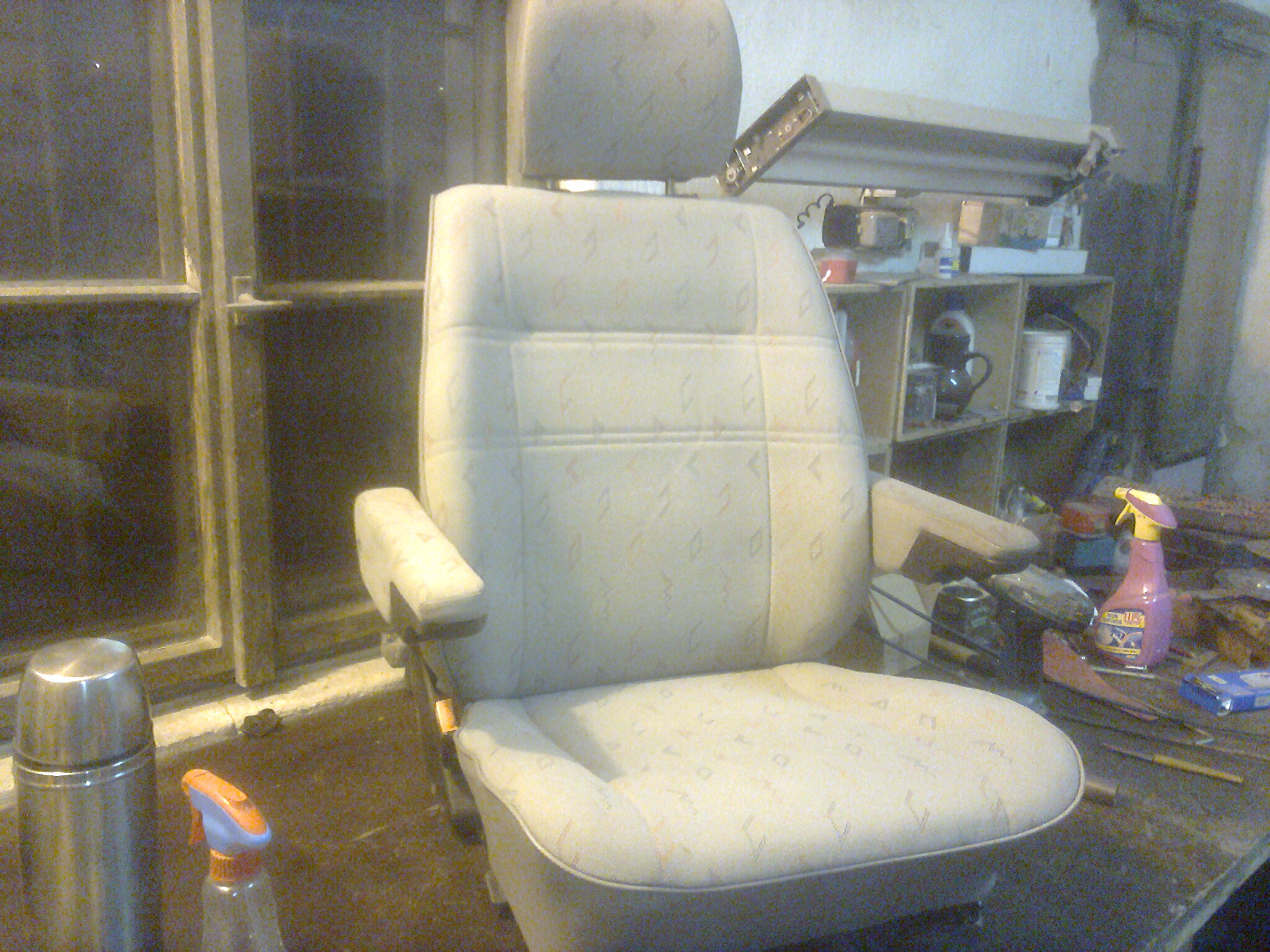 Když jsem si koupil před dvěma lety T4,byla sedačka řidiče úplně v rozkladu, vyměnil jsem je za sedačky z Dodge caravan-které po opravdu malých úpravách pasovaly až neuvěřitelně,měly i loketky a polohy nahoru dolů atp--leč ty origo jsou pohodlnější--pokud jsou v 100% stavu.A tak jsem začal ty moje starý renovovat, podle tvých fotek jsem je rozebral-slepil pattexem polštáře, podlepil geoškou,sehnal jsem na ebay loketky -jsou na cestě z DE, navařil bych tam ty plechy ale nevím jaká origo matka pod imbus je potřeba-nemám kde bych to okouknul, díky za radu